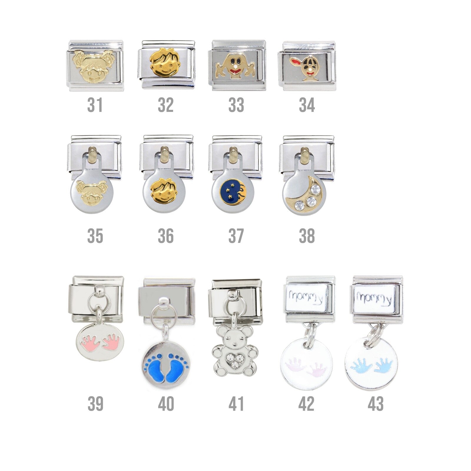 These 9mm Italian charms are beautifully crafted to celebrate the joy of welcoming a new baby. Designed to fit all standard 9mm Italian charm bracelets, each charm features a delightful baby-inspired design — from tiny hands and feet to charming prams, dummies, storks, and sweet symbols representing little girls and boys. Perfect for commemorating early milestones or gifting to new parents, these charms offer a timeless and meaningful way to personalise your bracelet with symbols of love, life, and new beginnings.