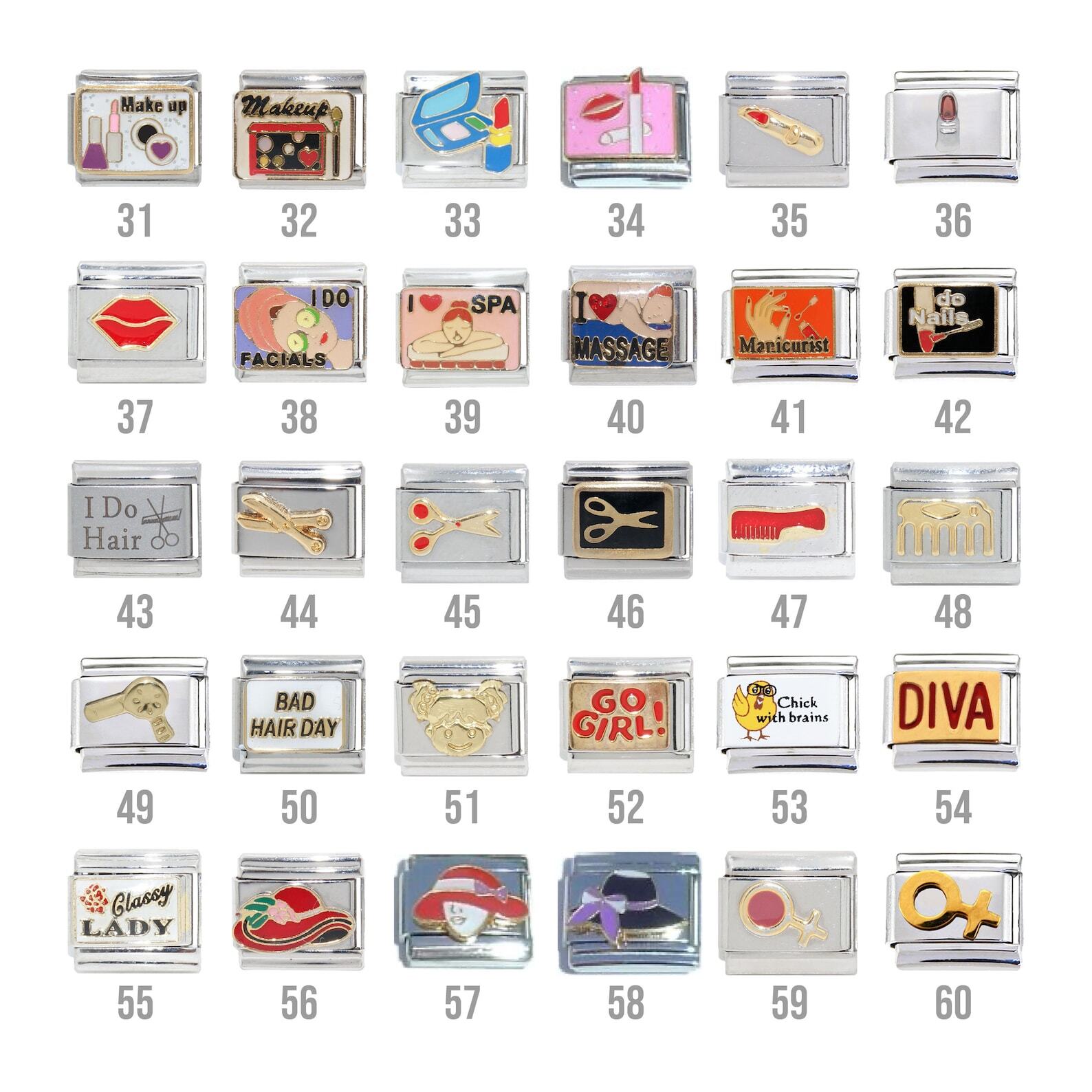 Express your personality with our Girlie 9mm Italian Charm, perfectly designed to fit all classic 9mm Italian charm bracelets. This playful yet elegant charm captures the spirit of all things feminine—featuring fun, detailed motifs like high heels, shopping bags, lipstick, makeup, hairdryers, massages, and that unmistakable diva attitude.